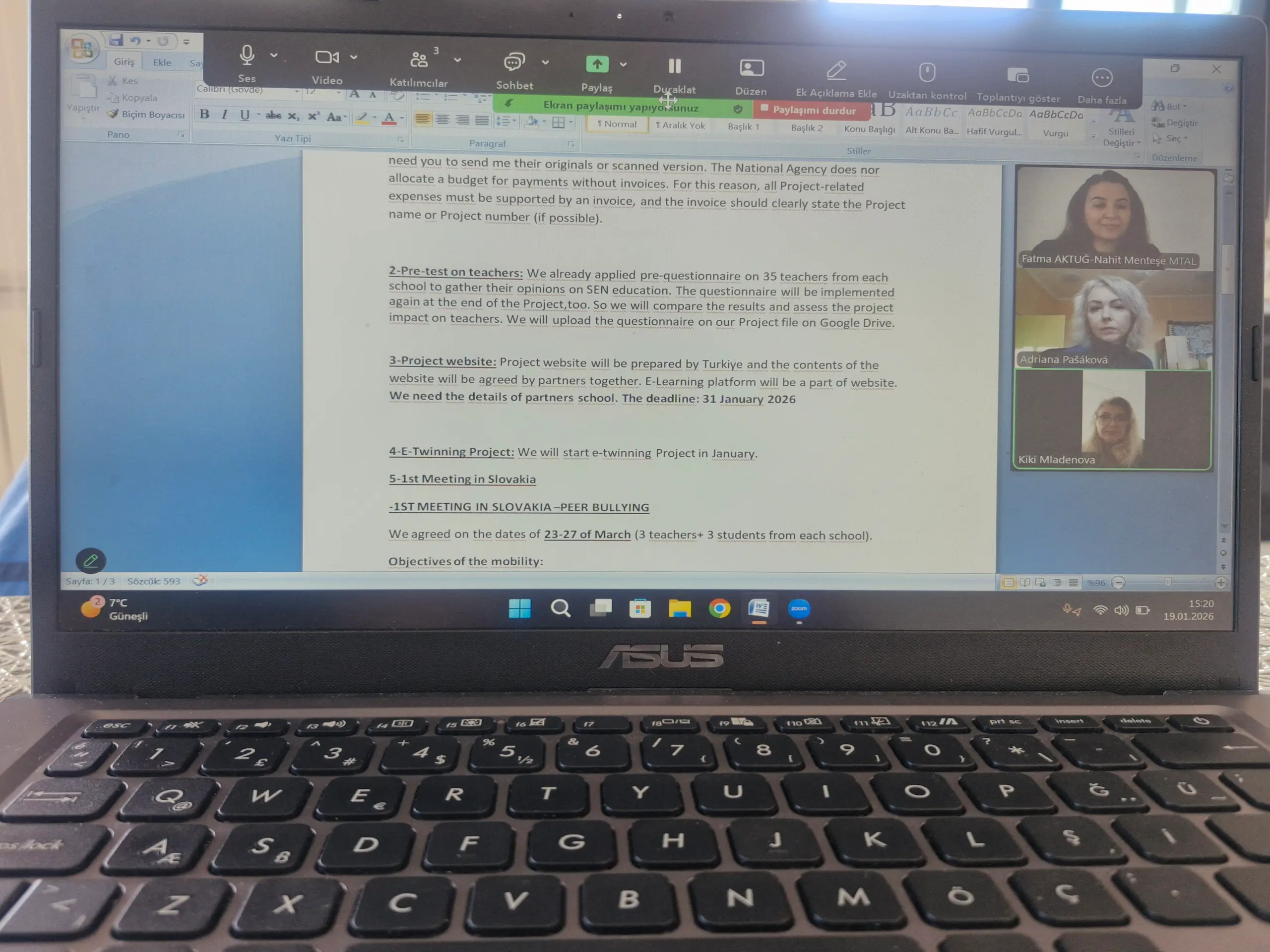 The development of the project website was also discussed. It was decided that the website will be prepared under the coordination of Türkiye, while the content will be created jointly by all partners. One of the key agenda items was the detailed planning of the first mobility activity to be held in Slovakia. It was announced that 3 teachers and 3 students from each partner school will participate in the mobility scheduled for 23–27 March in Slovakia.
